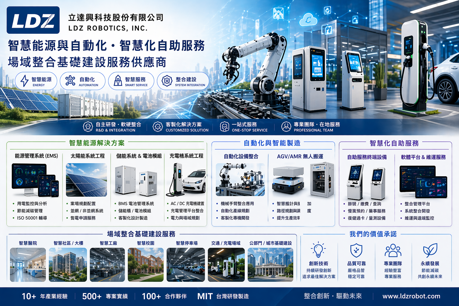 查看內容立達興科技股份有限公司成立於 2013 年,專注於智慧能源、自動化設備、AIoT、雲端平台與整合型系統開發。公司具備 OEM / ODM、軟硬體整合、電器承裝、可視化平台開發與專案落地能力,協助企業與各類場域打造更高效率、更安全、更智慧的應用環境。 立達興的服務範圍涵蓋能源服務工程、太陽能系統、儲能系統、充電樁系統、能源管理系統、機器人設備、無人化服務系統、AIoT 系統與智慧場域整合。從需求評估、方案規劃、設計製造、系統整合到交付維運,提供一站式整合服務。